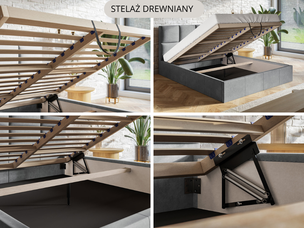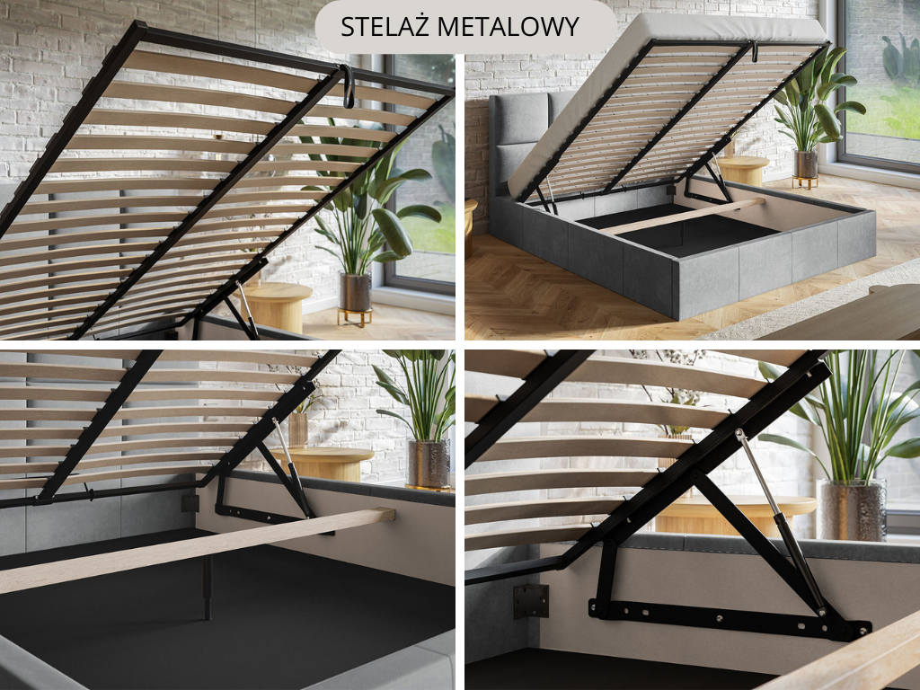 - Stelaż metalowy – podnoszony na siłownikach gazowych, wyposażony w 36 listew brzozowych, maksymalne obciążenie do 250 kg