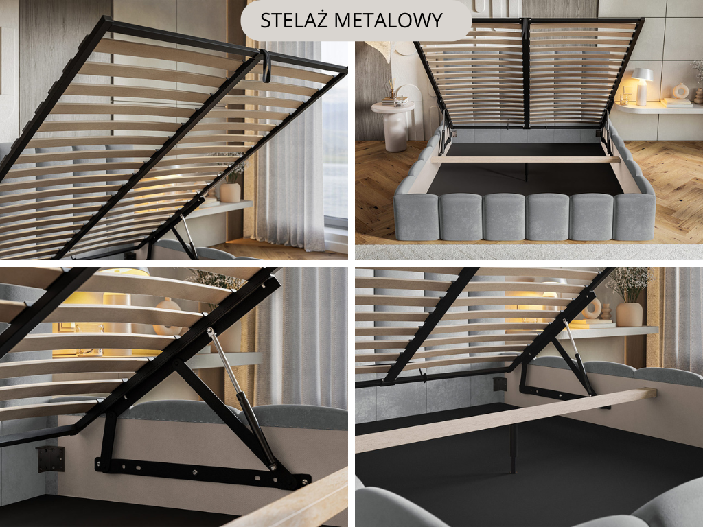 - Stelaż metalowy – podnoszony na siłownikach gazowych, wyposażony w 36 listew brzozowych, maksymalne obciążenie do 250 kg