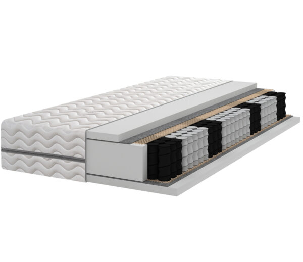 Wkład materaca wykonany jest z 120 mm wysokiej jakości, podwójnie hartowanych sprężyn woreczkowych. Znajdują się one w oddzielnych kieszonkach , klejonych punktowo. Sprężyny dzielą materac na 7 stref, każda o odpowiednim podparciu dla danej części ciała. Wkłady sprężynowe otoczone są obustronnie warstwą filcu usztywniającym całą konstrukcję i zwiększającym wytrzymałość produktu. Każdą zewnętrzną stronę materaca tworzy 30 mm pianki najnowszej generacji ecoPUR o zwiększonej gęstości do 30 kg/m3. Pianka cechuje się doskonałą wentylacją, wysoką odpornością na odkształcenia i zapewnia prawidłową elastyczność oraz amortyzację sylwetki.