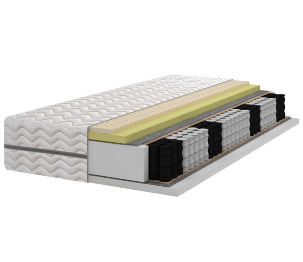 Wkład materaca wykonany jest z warstwy 120 mm sprężyn woreczkowych wykonanych w technologii Double Hard, podwójnie hartowanych o zwiększonej żywotności. Znajdują się one w niezależnych kieszonkach zwiększając pracę pojedynczych sprężyn i poprawiając pracę materaca. Sprężyny dzielą materac na 7 stref, każda o odpowiednim podparciu dla danej części ciała. Wkład sprężynowy otoczony jest dwustronnie warstwą filcu mającego za zadanie usztywnienie całej konstrukcji i zwiększenie wytrzymałości materaca. Stronę miękką ( twardość H2) tworzą dwie warstwy pianek: 20 mm warstwa pianki lateksowej o porowatej strukturze, ułatwiającej przepływ powietrza i zapobiegającej rozwojowi bakterii, a także 30 mm warstwa pianki termoelastycznej Visco Memory idealnie dopasowującej się do kształtu ciała. Drugą stronę materaca, średnio-twardą ( twardość H3) uzyskano poprzez nałożenie 30 mm warstwy pianki ecoPUR o zwiększonej gęstości do 30 kg/m3 zapewniającej prawidłową elastyczność materaca oraz cyrkulację powietrza.