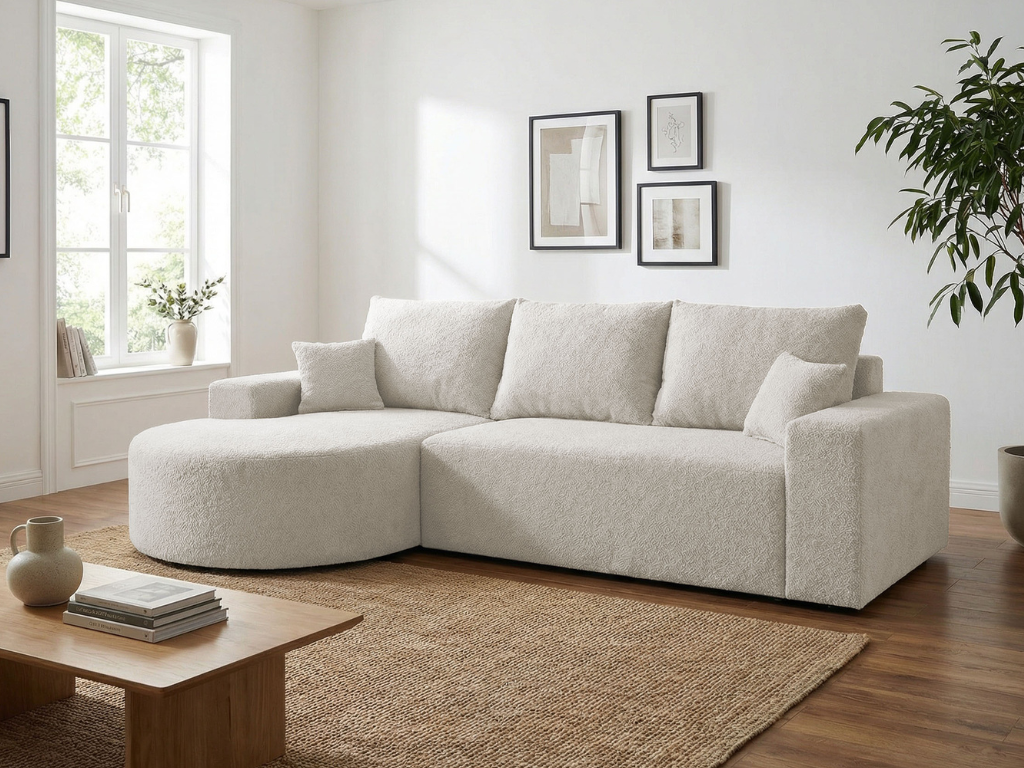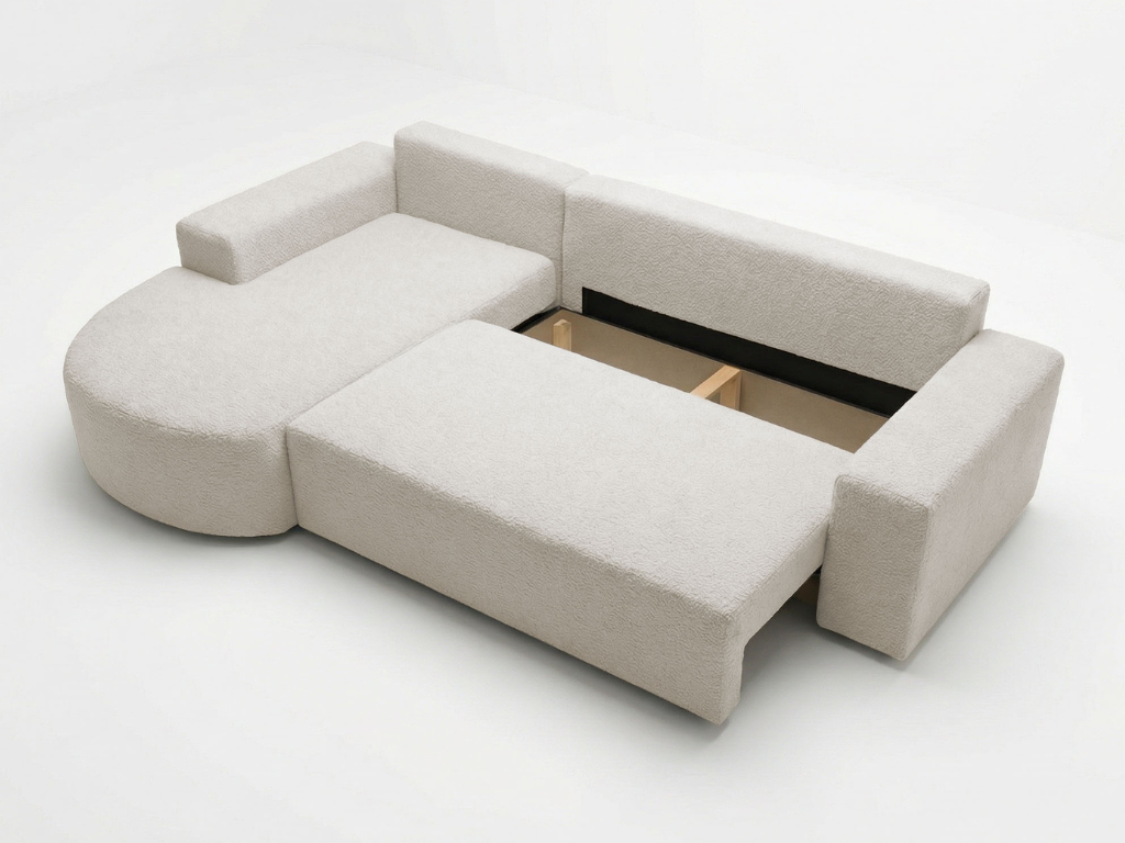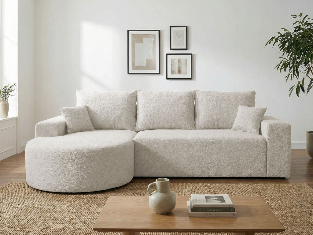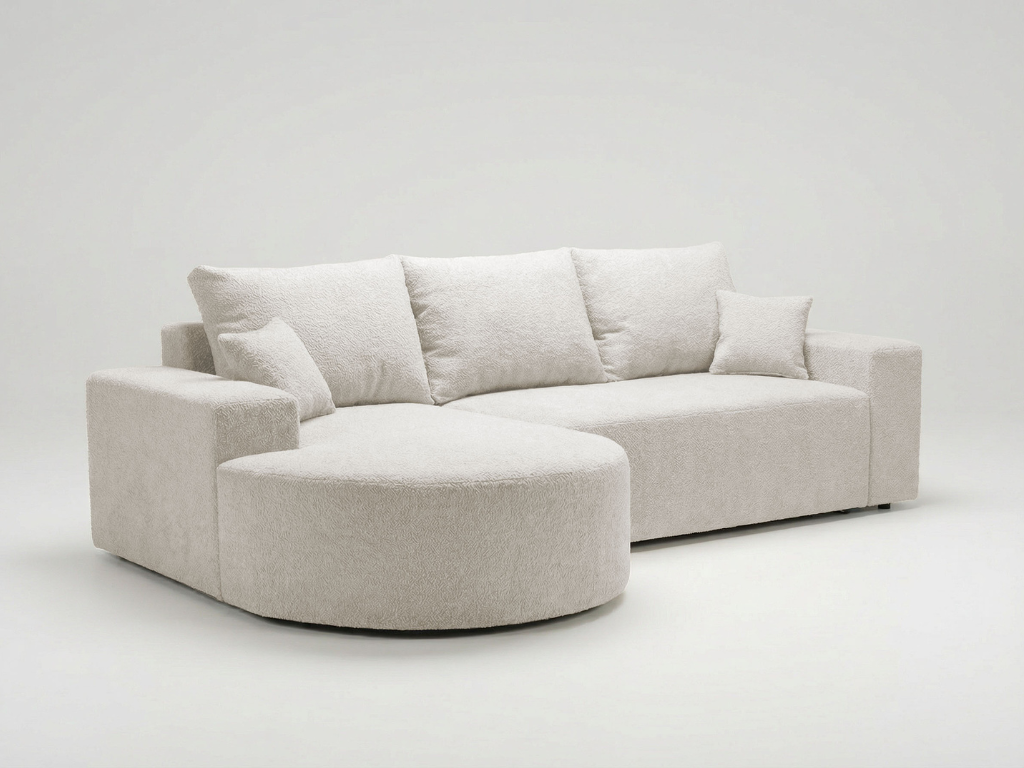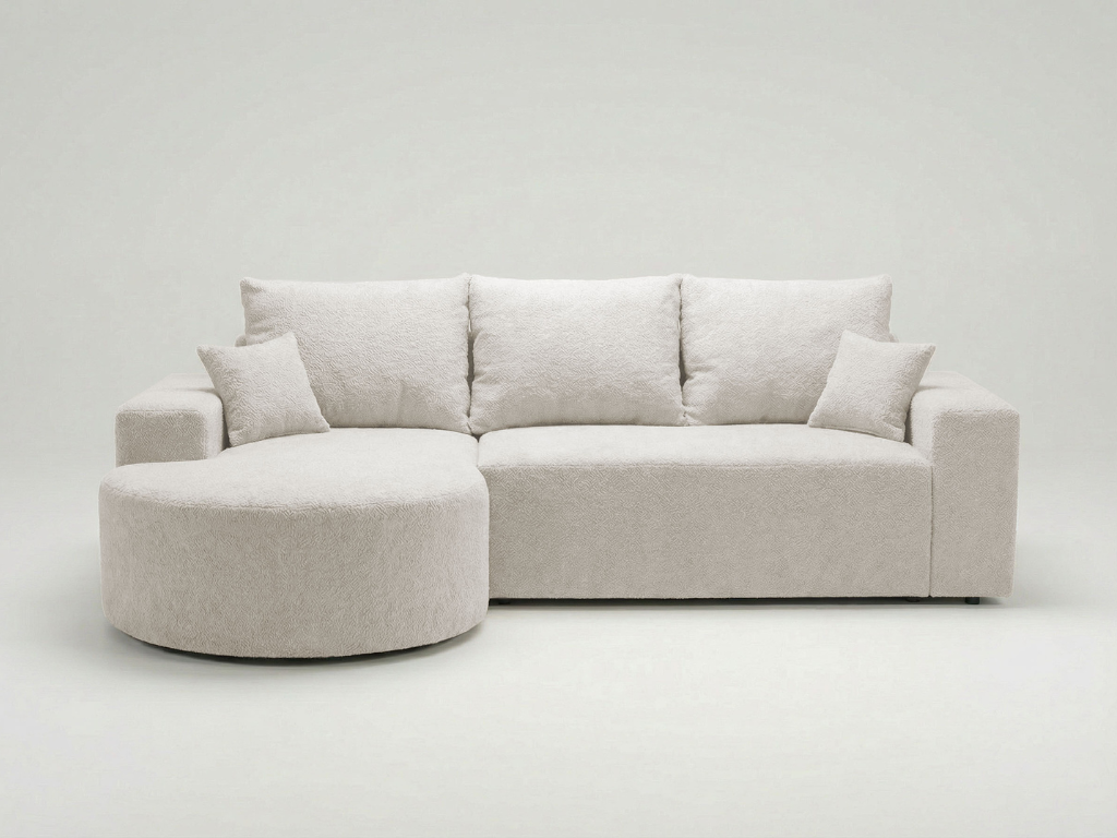 Strona główna > Narożniki > Narożnik VELO z półokrągłą otomaną do salonu z funkcją spania bukla Catch me 01