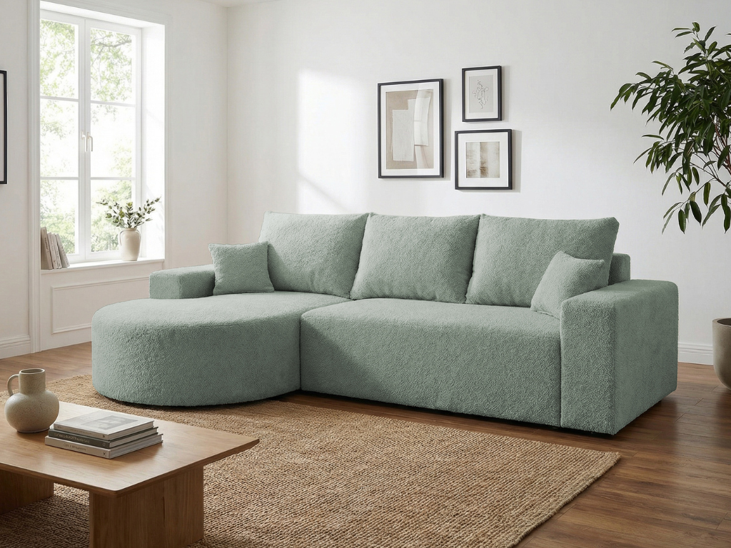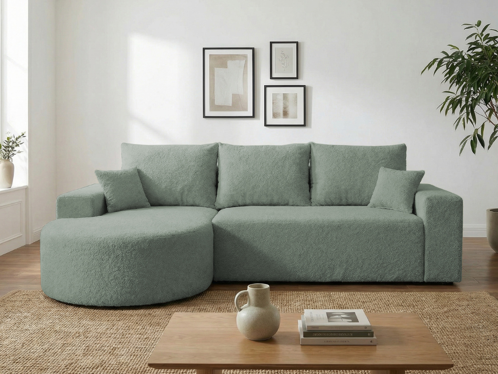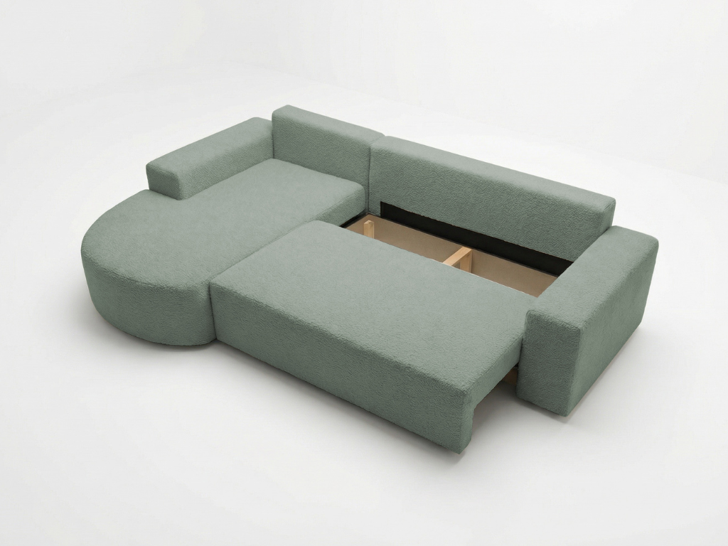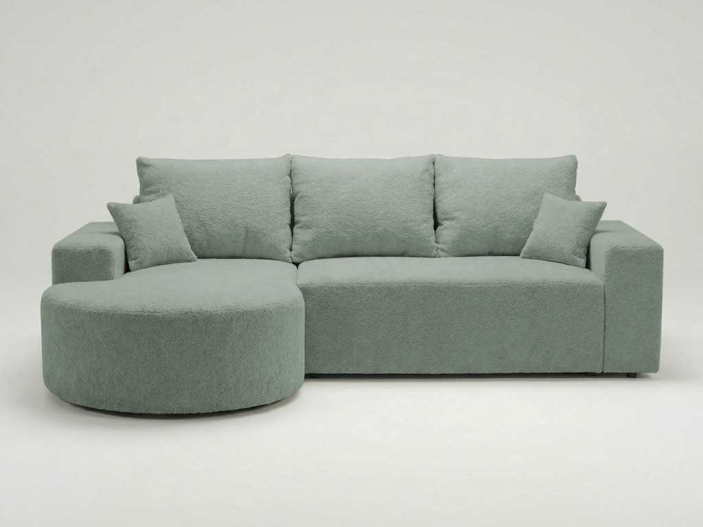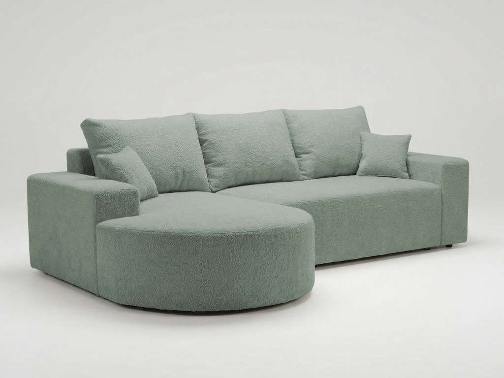 Strona główna > Narożniki > Narożnik VELO miętowy z półokrągłą otomaną do salonu z funkcją spania bukla Catch me 13